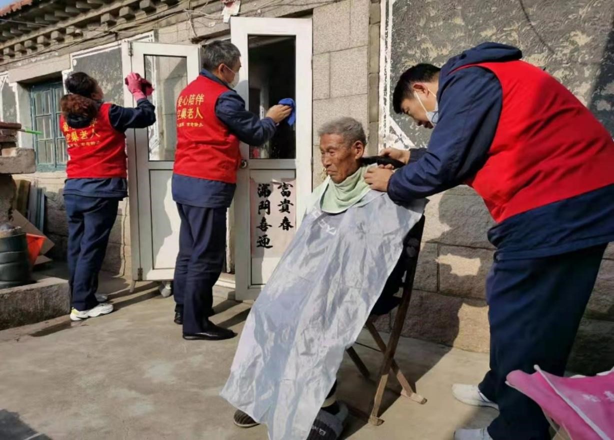 從那以后,無論是春暖花開,還是寒風(fēng)刺骨,無論是國際志愿者日,還是學(xué)雷鋒日,在“怡善巴士愛心陪伴團(tuán)隊”的志愿活動中,我都積極參加,在完成運營工作任務(wù)之余,我盡最大的努力抽出時間,參加愛心團(tuán)隊組織的愛心陪伴和其他各種志愿活動。在嶗山區(qū)金家?guī)X街道王家村社區(qū),從2019年開始,最初,只能做點給80多歲的王祝才大爺打掃院子衛(wèi)生之類比較簡單的工作,后來跟著愛心團(tuán)隊的女志愿者們學(xué)會了為90多歲的曲方平大爺包餛飩,由于專門給曲大爺理發(fā)的志愿者李啟筍大哥身體抱恙,一段時間內(nèi)不能參加志愿活動,我便自告奮勇地接過了給曲大爺理發(fā)的任務(wù),從笨拙到熟練,也成了曲大爺?shù)膶B毨戆l(fā)師;再后來,在程剛和尹義忠等志愿者的指導(dǎo)下,一起為86歲高齡的王淑蘭阿姨更換破碎的門扇紗窗,我邊看邊學(xué),逐漸掌握了志愿者必備的多種技能,今年我又被委任為愛心團(tuán)隊的通訊員,負(fù)責(zé)把我們愛心團(tuán)隊的愛心助老等志愿活動,整理成文字,宣揚怡善故事,傳遞愛心能量。我一步一步融入到“怡善巴士愛心陪伴團(tuán)隊”志愿者的大家庭中,在各種志愿活動中積極為有需要的人群服務(wù),為愛心事業(yè)貢獻(xiàn)出自己的一分力量!當(dāng)每一次給曲大爺理完發(fā),看著大爺帥氣的新發(fā)型,感受著大爺內(nèi)心的喜悅;每一次給王阿姨做家務(wù),王阿姨都像心疼自己孩子一樣對志愿者說:“好了孩子們,已經(jīng)很干凈了,快來喝口茶歇歇吧!”;還有王祝才大爺,雖然口齒不是很清楚,但每次志愿者們?nèi)タ赐?,他老人家總是緊緊地握著志愿者的手,臉上洋溢著幸福的笑容。用真心換真情,這些年來,對于志愿者們默默的付出,這些空巢老人們都看在眼里,暖在心里,老人們發(fā)自內(nèi)心的把志愿者當(dāng)成了自己的孩子,愛心陪伴讓空巢老人們享受到了有兒有女的天倫之樂,我也在與老人們的交往中,分享著老人們的快樂,每每看到老人們開懷大笑,每每握著老人們的手,感受著那份依依不舍,都會感覺熱淚盈眶,這種快樂無可比擬,我深深體會到,這就是“助人為樂”的真正含義!愛心助人所得到的快樂是更高層次的快樂!