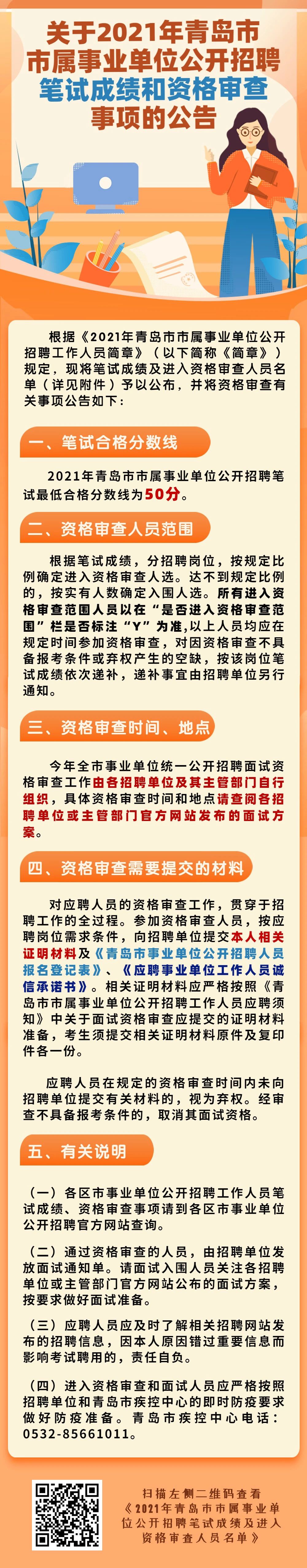 關(guān)于2021年青島市市屬事業(yè)單位公開招聘筆試成績和資格審查事項(xiàng)的公告