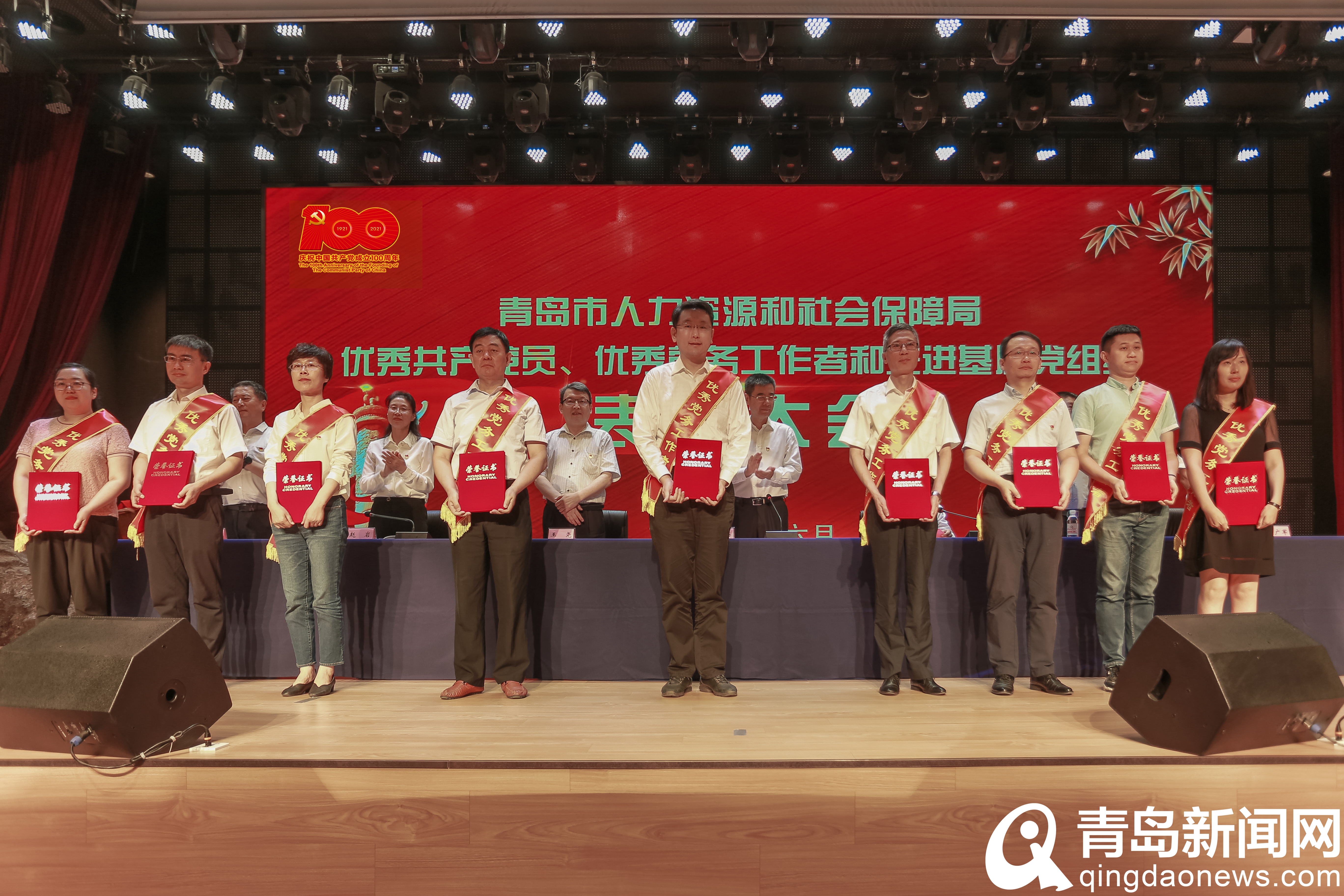 與會(huì)領(lǐng)導(dǎo)為受到表彰的優(yōu)秀共產(chǎn)黨員、優(yōu)秀黨務(wù)工作者和先進(jìn)基層黨組織頒發(fā)榮譽(yù)證書和獎(jiǎng)牌;青島市委組織部副部長(zhǎng),市人社局黨組書記、局長(zhǎng)胡義瑛同志作了講話,他強(qiáng)調(diào),要在緬懷黨的豐功偉業(yè)中,始終堅(jiān)守忠誠(chéng)之心,續(xù)寫愛(ài)黨建黨新篇章;在謳歌黨的豐功偉業(yè)中,始終堅(jiān)守為民之心,續(xù)寫服務(wù)民生新篇章;在禮贊黨的豐功偉業(yè)中,始終堅(jiān)守奮斗之心,續(xù)寫擔(dān)當(dāng)作為新篇章;在追溯黨的豐功偉業(yè)中,始終堅(jiān)守敬畏之心,續(xù)寫清正廉潔新篇章。