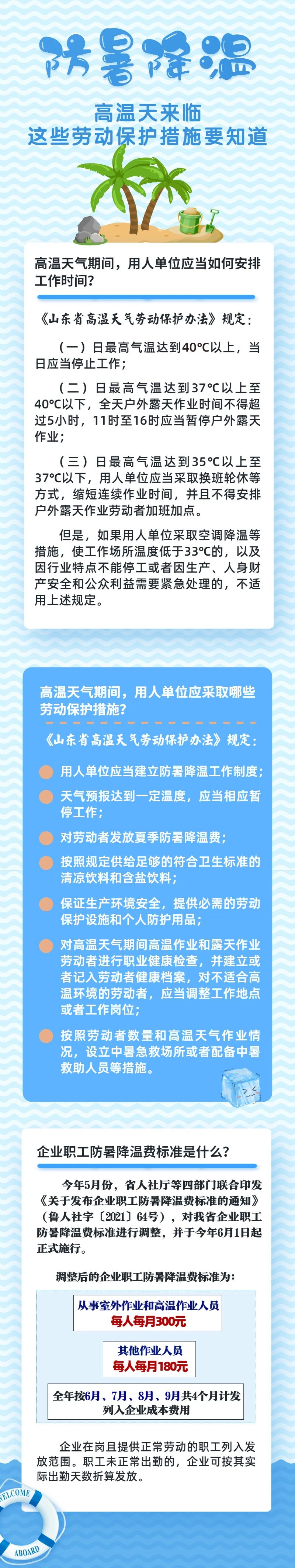 青島新聞網(wǎng)7月6日訊 近日,我省多地持續(xù)高溫,對(duì)勞動(dòng)者生產(chǎn)生活帶來一定影響。按照《山東省高溫天氣勞動(dòng)保護(hù)辦法》等法律法規(guī)要求,省內(nèi)各類企業(yè)應(yīng)落實(shí)防暑降溫工作措施,調(diào)整工作時(shí)間、減輕勞動(dòng)強(qiáng)度,確保夏季生產(chǎn)安全和職工身體健康。