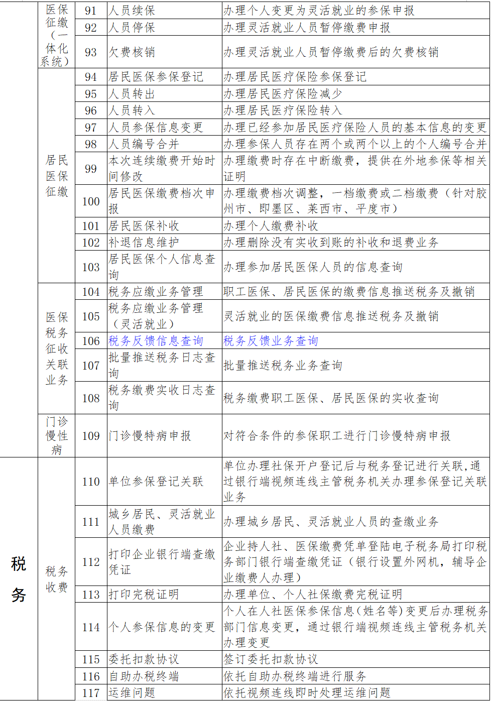 目前,青島市“社銀通”合作銀行包括交通銀行、青島農(nóng)商銀行、工商銀行、青島銀行等4家商業(yè)銀行分布在全市范圍的120個(gè)網(wǎng)點(diǎn),延伸的服務(wù)事項(xiàng)包括社保類56項(xiàng),醫(yī)保類53項(xiàng),稅務(wù)類9項(xiàng)。例如,企業(yè)社保開戶、人員參保登記、企業(yè)參保職工退休申請(qǐng)、社會(huì)保險(xiǎn)轉(zhuǎn)移申請(qǐng)、單位及個(gè)人社會(huì)保險(xiǎn)參保證明、參保信息修改、繳費(fèi)及待遇領(lǐng)取情況查詢等企業(yè)和參保人員日常辦理頻次較高的業(yè)務(wù),都可通過就近的“社銀通”銀行網(wǎng)點(diǎn)辦理。
