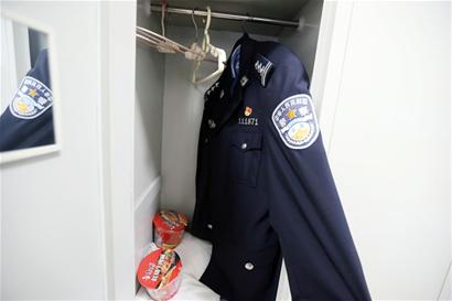 衣柜里還有兩桶未開封的方便面,李涌警號(hào)111871的警服整齊地掛在衣柜里。辦公桌上有一個(gè)兩升裝的塑料瓶子,以及兩個(gè)熟雞蛋。指導(dǎo)員趙永杰說(shuō),每次外出巡邏,李涌都要裝上滿滿一瓶子水,深夜食堂不開,雞蛋和方便面原本是等著巡邏結(jié)束后吃的。