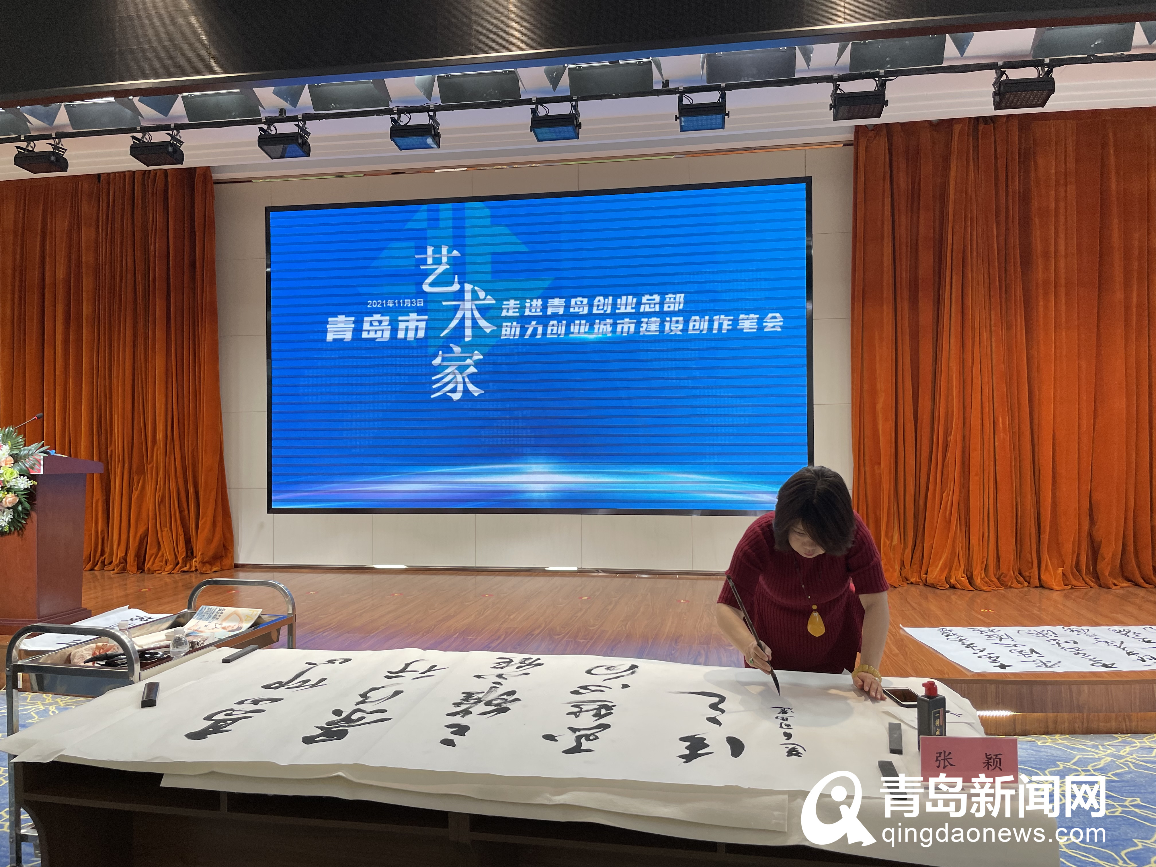 “青島創(chuàng)業(yè)總部作為青島創(chuàng)業(yè)城市建設(shè)的總部樞紐,既是青島市委‘青創(chuàng)十條’功能承載核心區(qū)、建設(shè)全國(guó)創(chuàng)業(yè)示范城市的踐行區(qū),也是全市創(chuàng)業(yè)信息的集散地、創(chuàng)業(yè)資源的配置地?!笔腥肆Y源社會(huì)保障局黨組成員、副局長(zhǎng)劉傳華表示,“此次藝術(shù)家走進(jìn)創(chuàng)業(yè)總部,通過(guò)筆墨展現(xiàn)出青島作為創(chuàng)業(yè)城市開(kāi)放、創(chuàng)新的鮮明品格和海納百川的胸襟與氣魄,為青島創(chuàng)業(yè)城市建設(shè)注入了豐富的文化內(nèi)涵和藝術(shù)氣息,讓創(chuàng)業(yè)創(chuàng)新創(chuàng)造成為島城俯拾皆是的生活因子?!?/p>