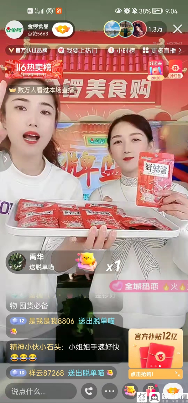 活動期間,金鑼電商日均銷售100萬元以上,已在各電商平臺累計(jì)銷售超1000萬元。此外,活動期間,快手平臺金鑼場單場銷售額達(dá)到111萬元,觀看人數(shù)89萬,全天位于快手品牌榜第一名,天貓、京東等店鋪位于行業(yè)前列,成績斐然。