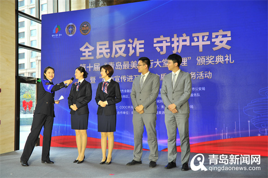 青島新聞網(wǎng)1月14日訊(記者 丁淑華)為支持建設(shè)文明城市,助力銀行網(wǎng)點(diǎn)服務(wù)提升,展現(xiàn)島城銀行業(yè)的精神風(fēng)貌、服務(wù)水平、社會(huì)責(zé)任與擔(dān)當(dāng);同時(shí),縱深推進(jìn)“全民反詐”進(jìn)網(wǎng)點(diǎn),構(gòu)建銀行網(wǎng)點(diǎn)一線反詐“防火墻”,1月14日,青島市第十屆“最美銀行大堂經(jīng)理”頒獎(jiǎng)典禮暨“反詐宣傳進(jìn)萬家”金盾志愿服務(wù)活動(dòng)在中央商務(wù)區(qū)舉行?;顒?dòng)由青島市地方金融監(jiān)督管理局、人民銀行青島市中心支行、青島市公安局指導(dǎo),由中央商務(wù)區(qū)、市北區(qū)地方金融監(jiān)督管理局、市北公安主辦,青島新聞網(wǎng)承辦,COOC中海商務(wù)、青島中海大廈協(xié)辦,即墨老酒合作舉辦。
