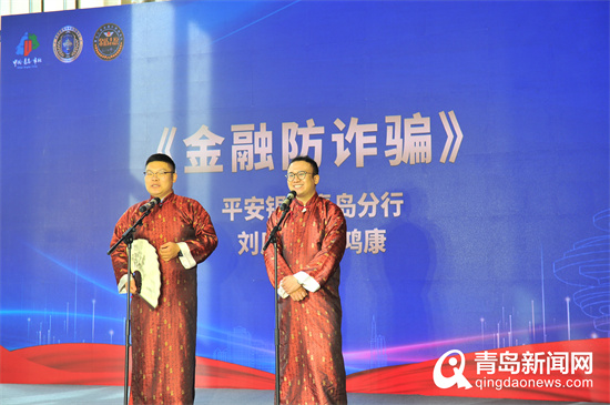 頒獎(jiǎng)儀式結(jié)束后,市北公安民警上臺(tái)帶來反詐知識(shí)小課堂,到場(chǎng)銀行工作人員積極互動(dòng),進(jìn)一步普及反詐知識(shí);平安銀行青島分行帶來的相聲表演《金融防詐騙》、青島銀行帶來的情景劇《青馨知善·防詐騙》……金盾志愿服務(wù)隊(duì)、銀行工作人員輪番登場(chǎng),帶來接地氣的反詐宣傳表演,獲得觀眾陣陣掌聲。