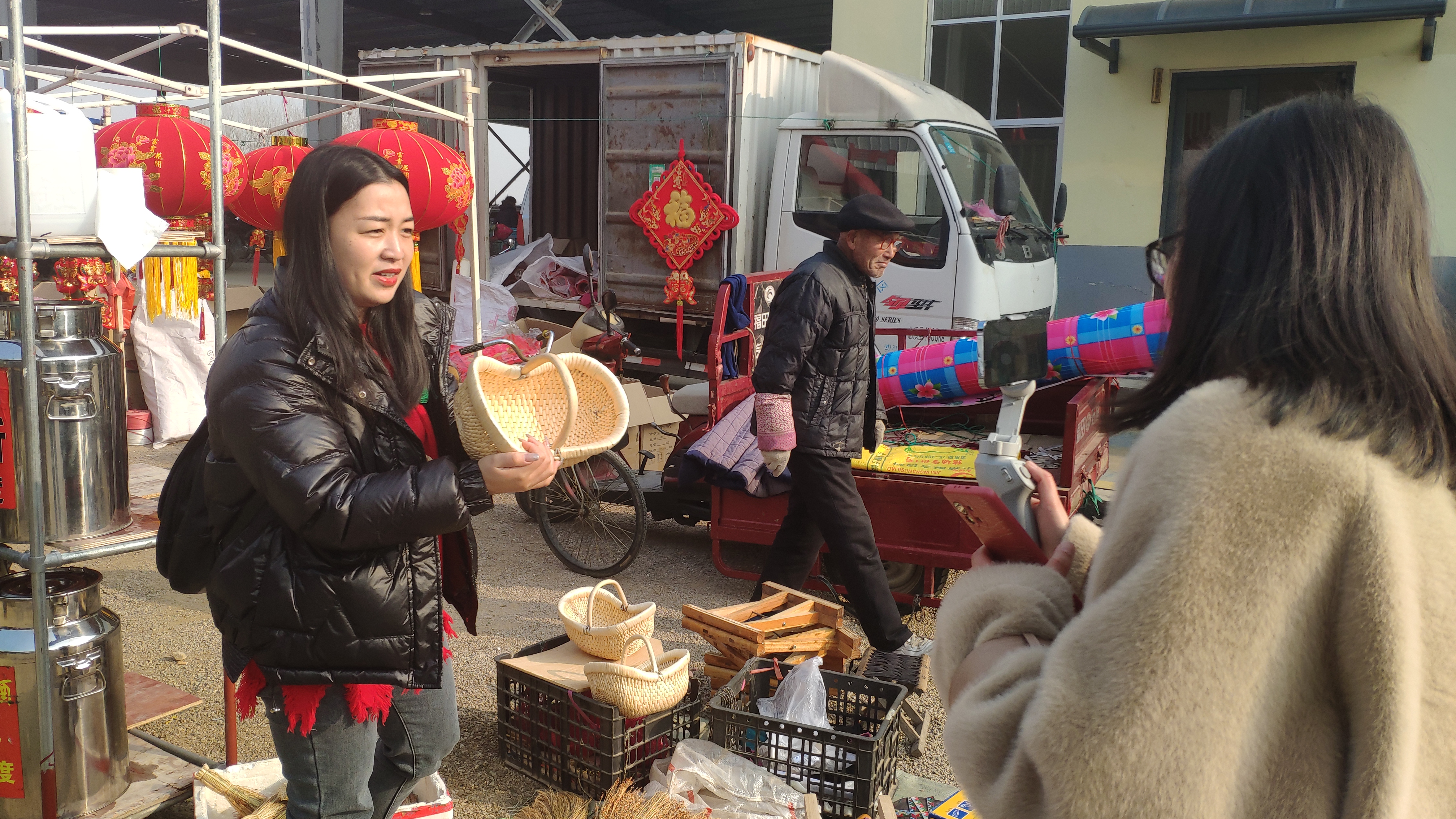 進入臘月門,前來趕集的人絡繹不絕。在大場集上,自媒體人見識了各式各樣手工制作的老物件,像老式的編制杬子、手工馬扎子等物件,讓自媒體人大呼稀奇。