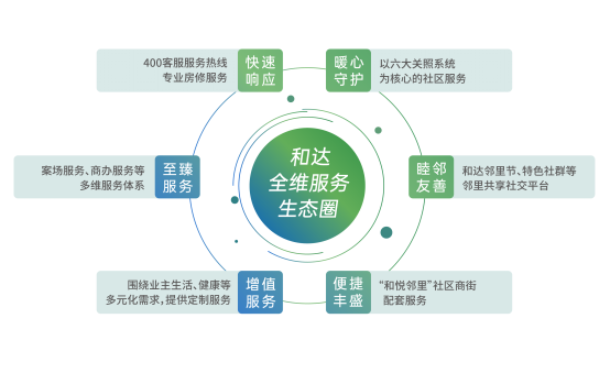 2022年,和達(dá)集團(tuán)繼續(xù)聚焦全維服務(wù)生態(tài)圈構(gòu)建之道,通過“物業(yè)服務(wù)煥新”、“社群服務(wù)煥新”、“社區(qū)商業(yè)服務(wù)煥新”三大維度,構(gòu)建從售場(chǎng)到入住,從生活服務(wù)到睦鄰友好的全維服務(wù)體系。