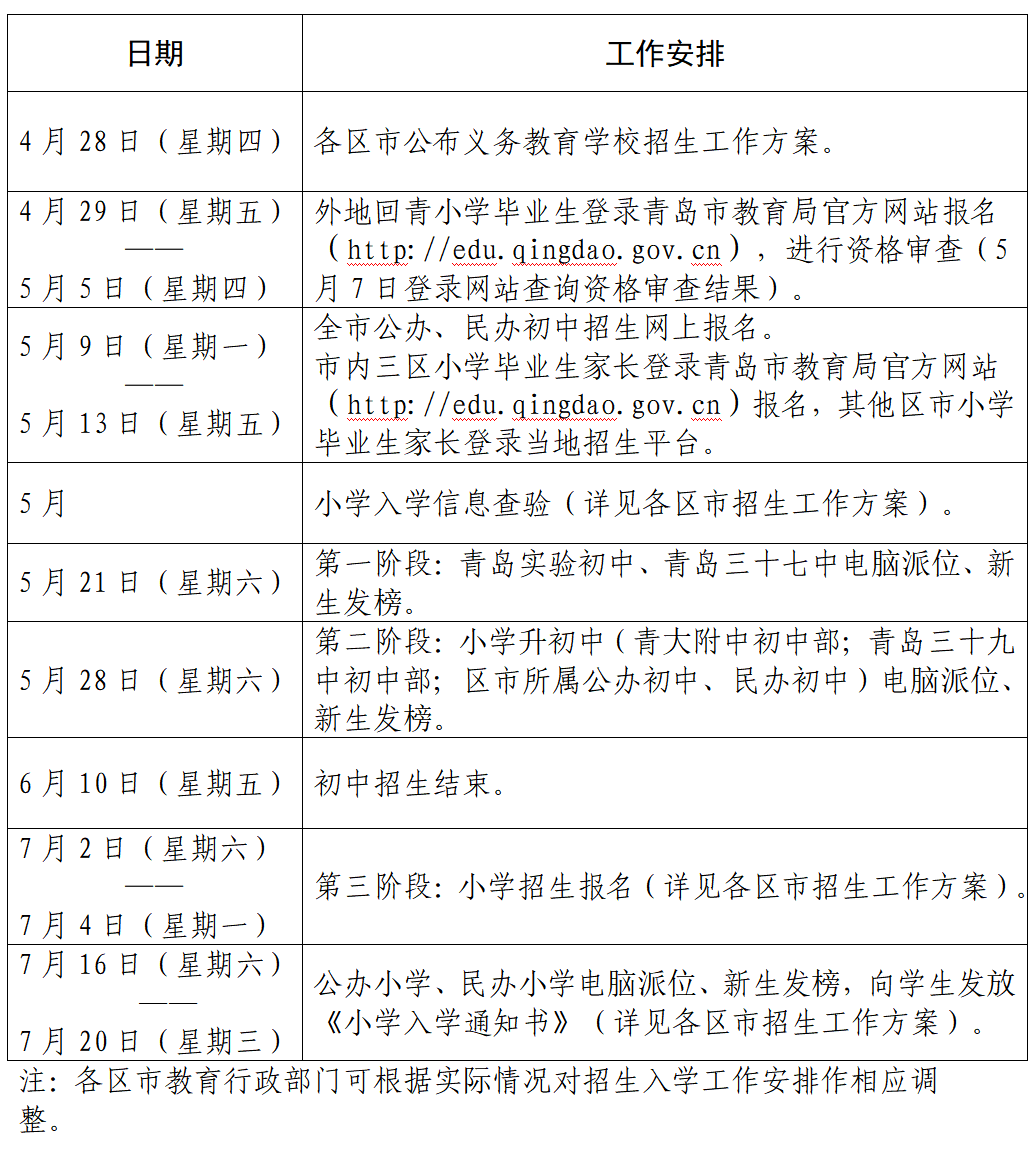2022年青島市義務(wù)教育學(xué)校招生入學(xué)工作安排