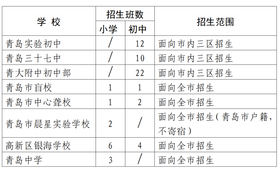 第二階段:所有民辦初中學(xué)校與區(qū)市所屬公辦初中學(xué)校同步招生。青大附中初中部招生由市教育局負(fù)責(zé)組織。其他初中學(xué)校由區(qū)市教育行政部門(mén)負(fù)責(zé)組織。青島三十九中初中部納入市南區(qū)招生范圍,招生方式與市南區(qū)中片公辦初中學(xué)校相同。