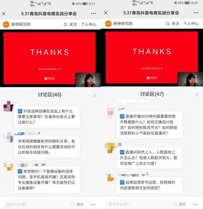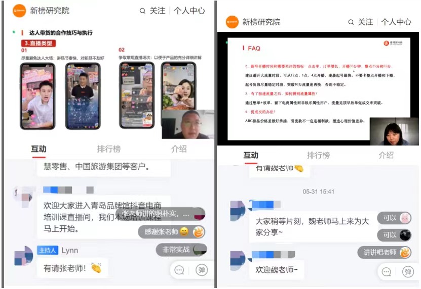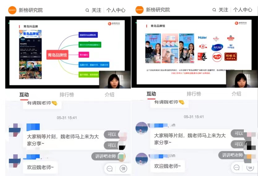 在兩位老師的精彩授課后,商家們通過(guò)彈幕留言的方式進(jìn)行了踴躍的提問(wèn)?!捌放谱誀I(yíng)賬號(hào)運(yùn)營(yíng),內(nèi)容更新頻次如何把控?打造爆款的門(mén)檻是什么?”“直播間突然上人,人數(shù)直線上升怎么辦?但是人數(shù)起伏很大,是否在推廣上加大力度?”“新賬戶做達(dá)人帶貨直播間,前期主堆銷量重要還是直播間留存率更重要?”兩位老師一一解答,并表示尋求類似青島新聞網(wǎng)這樣的本地服務(wù)商可幫助企業(yè)減少大量試錯(cuò)成本,特別是時(shí)間成本。