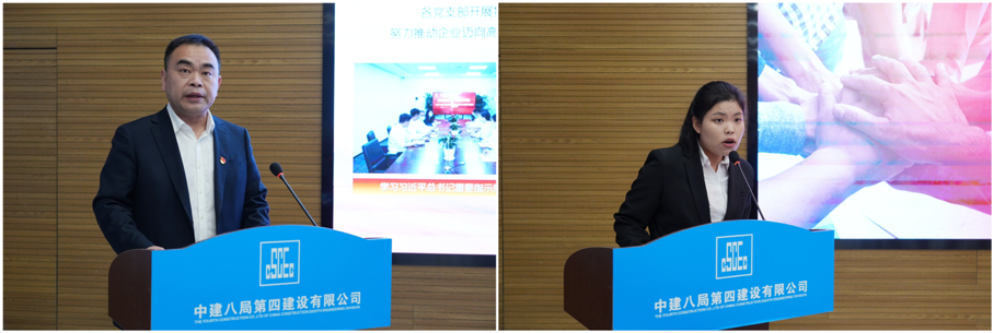 中建八局第四建設(shè)有限公司青島虛擬現(xiàn)實(shí)產(chǎn)業(yè)園項(xiàng)目黨支部黨員代表分享了“黨建+安全”的工作感悟。
