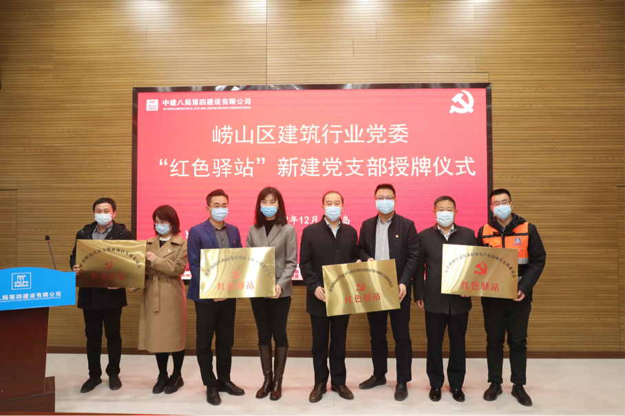 嶗山區(qū)建筑行業(yè)黨委為“紅色驛站”新建的項(xiàng)目支部委員會(huì)進(jìn)行了授牌。