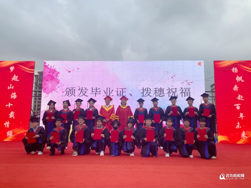 隨后,學(xué)校領(lǐng)導(dǎo)為學(xué)生頒發(fā)畢業(yè)證書(shū)并撥穗祝福,祝賀他們順利通過(guò)初中階段的學(xué)習(xí)之旅。