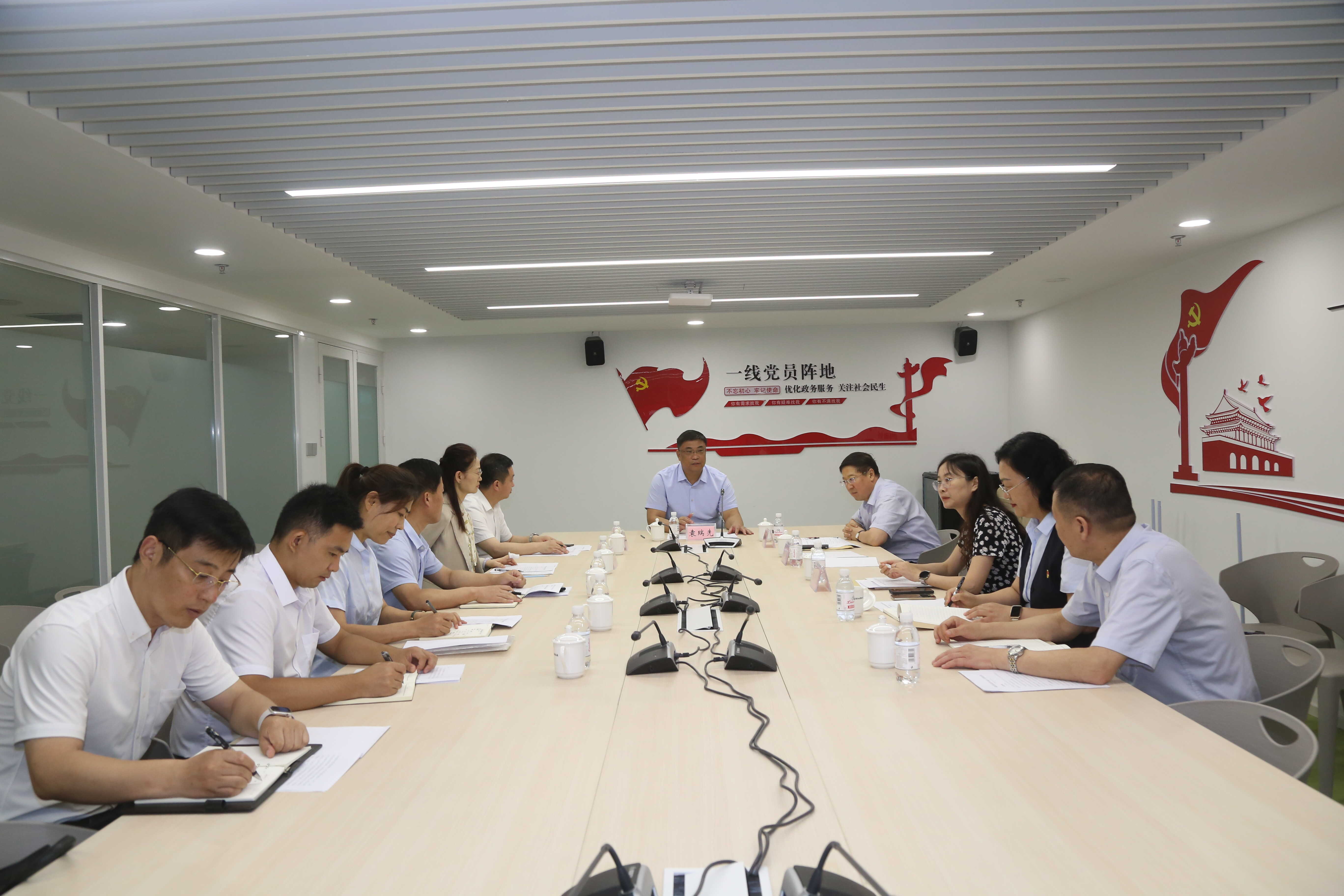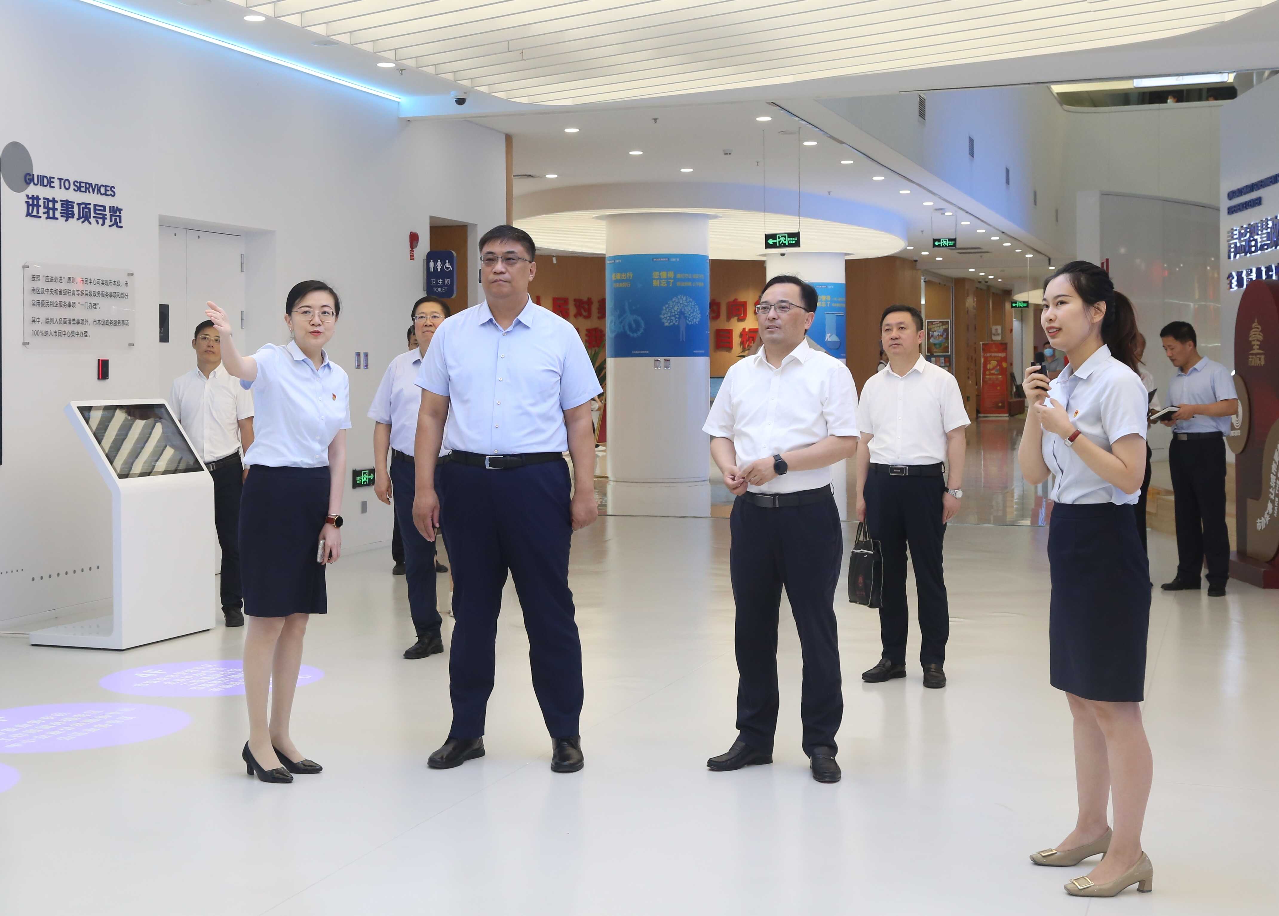 為推動學習貫徹習近平新時代中國特色社會主義思想主題教育走深走實,深化作風能力、優(yōu)化營商環(huán)境,7月6日上午,青島市農(nóng)業(yè)農(nóng)村局黨組書記、局長袁瑞先一行到青島市民中心調研農(nóng)業(yè)領域政務服務和優(yōu)化營商環(huán)境工作并慰問一線干部職工。青島市行政審批服務局黨組書記、局長趙發(fā)海對調研組一行表示歡迎,并介紹了有關工作情況。
