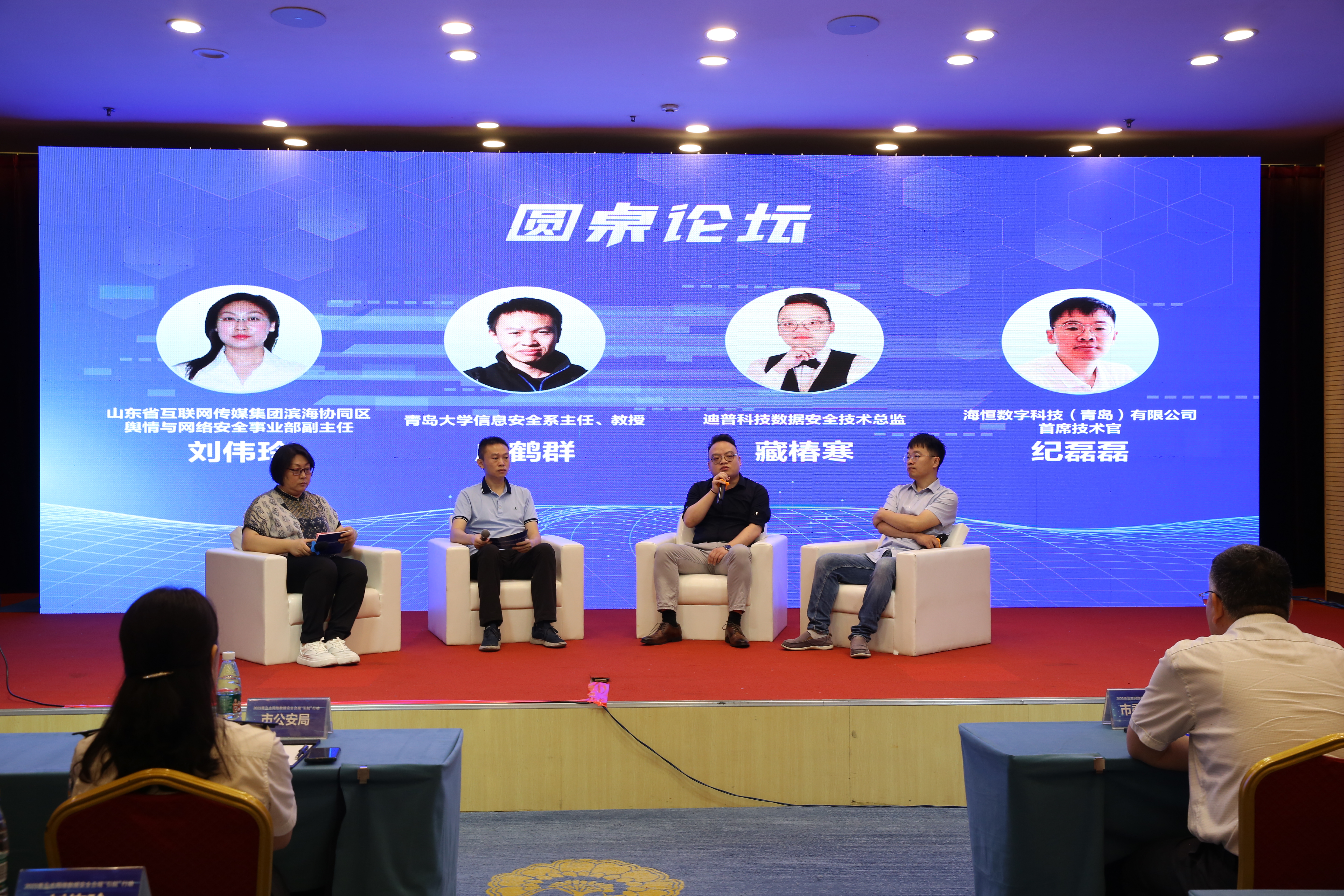 隨后,以圓桌會(huì)議的形式,就當(dāng)前國際國內(nèi)背景下,如何推進(jìn)數(shù)據(jù)安全保障和治理以應(yīng)對各種挑戰(zhàn),如何促進(jìn)數(shù)據(jù)安全產(chǎn)業(yè)發(fā)展,企業(yè)如何開展數(shù)據(jù)安全治理工作等方面進(jìn)行了探討。青島大學(xué)信息安全系主任、教授咸鶴群,迪普科技數(shù)據(jù)安全技術(shù)總監(jiān)藏椿寒,海恒數(shù)字科技(青島)有限公司首席技術(shù)官紀(jì)磊磊三位嘉賓作了精彩發(fā)言。