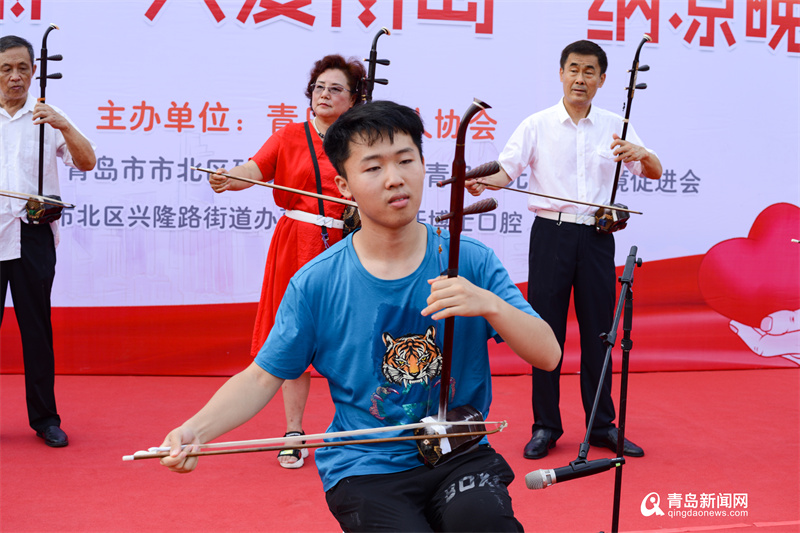 伴隨著歡快的鼓點(diǎn),晚會(huì)在非洲鼓表演《好日子》中拉開序幕,歌曲、舞蹈、曲藝、器樂(lè)演奏等等豐富多彩的節(jié)目讓臺(tái)下的觀眾仿佛忘記了夏日炎熱。其中,二胡齊奏《青島》,表達(dá)了對(duì)島城的熱愛(ài)之情,讓在場(chǎng)的觀眾沉浸其中,深受感染;藏族舞《次真拉姆》,用舞蹈的形式祝福偉大祖國(guó),謳歌紅色經(jīng)典,展現(xiàn)新時(shí)代風(fēng)貌;評(píng)書《月唐演義》引得大家連連叫好;《美麗的心情》、《我的九寨》《聽(tīng)聞遠(yuǎn)方有你》《我愛(ài)你塞北的雪》《爸爸的話》《花橋流水》《紅塵情歌》等歌唱節(jié)目,以及二胡獨(dú)奏《戰(zhàn)馬奔騰》、口琴獨(dú)奏《站在草原望北京》等節(jié)目,也得到了觀眾陣陣掌聲;歌舞《中國(guó)龍》將整場(chǎng)晚會(huì)推向了高潮;隨著《我和我的祖國(guó)》的音樂(lè)響起,晚會(huì)在演員們的齊聲合唱中落下帷幕。