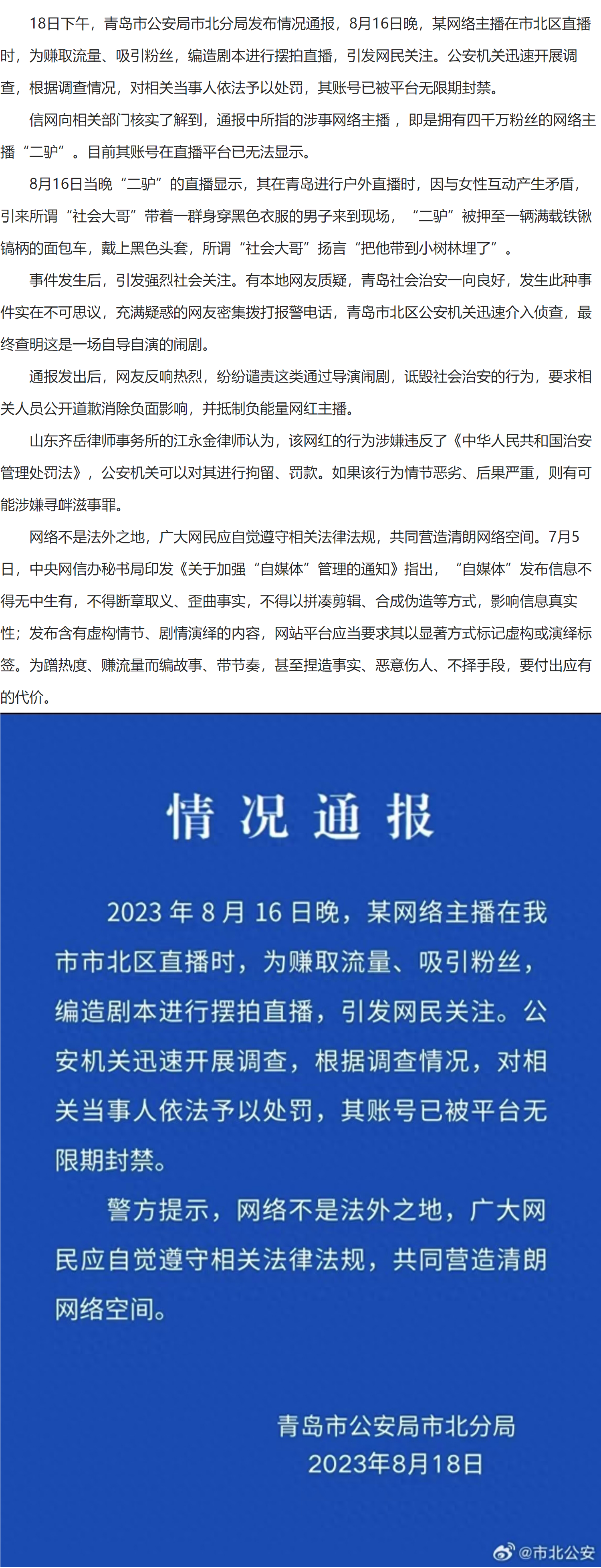 網(wǎng)紅“二驢”導(dǎo)演綁架鬧劇被封 戶外直播須遵循公序良俗