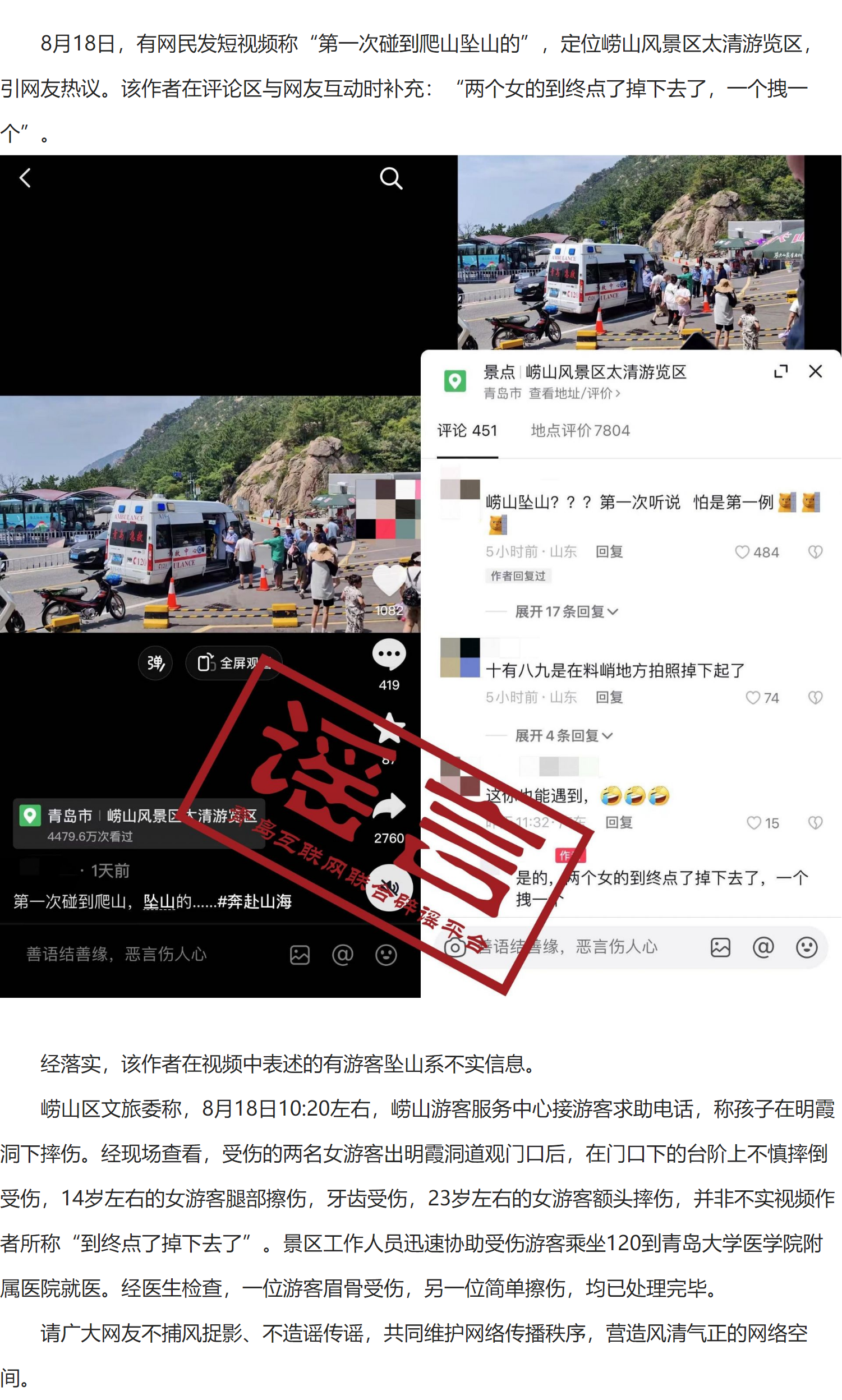 青島嶗山風(fēng)景區(qū)有人“墜山”?假的!