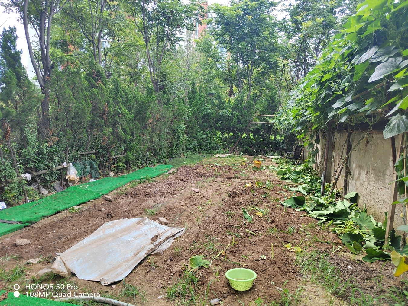 當(dāng)天上午,執(zhí)法人員在“文明青島隨手拍”小程序接收群眾反映西韓新苑東墻外有人毀壞綠化和植被,非法占用公共綠地圈了一塊菜地。