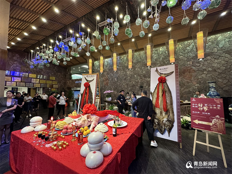 賓客紛至沓來、游人絡繹不絕地走進喬記漁莊,現(xiàn)場民間藝人展示著青島當?shù)氐拿袼坠に?,將?jié)日的氛圍傳遞給每一位來往食客,共同感受青島文化的魅力。