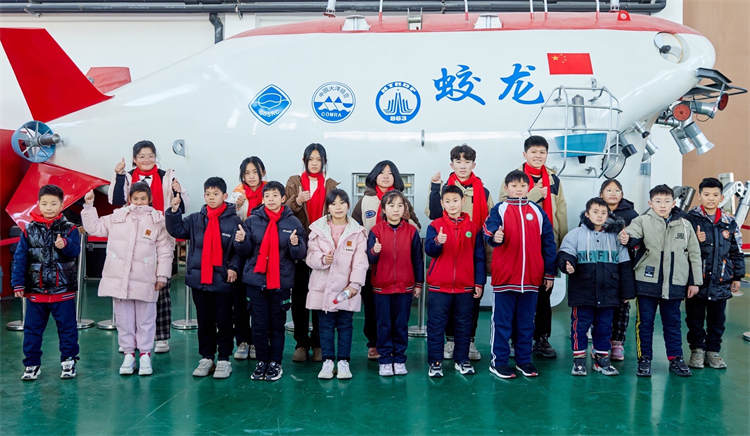 研學活動第二站來到國家深?;毓芾碇行模谶@里孩子們見到了“蛟龍”號深海載人潛艇的1:1模型,聆聽工作人員講解深海自然及科考知識。在好奇的目光和陣陣驚嘆聲中,孩子們興奮地遨游在神秘又富饒的海底世界。