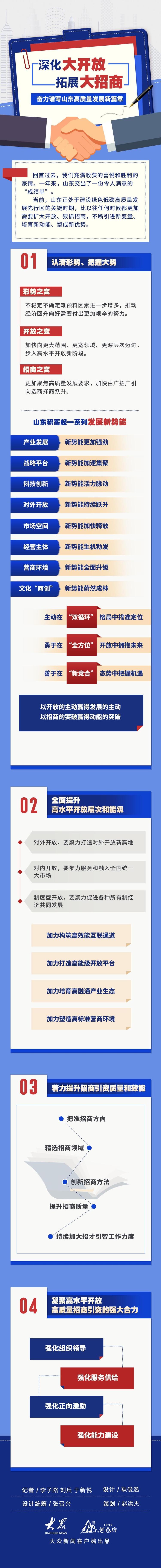 2月18日,節(jié)后首個工作日,山東省委、省政府在濟(jì)南召開全省高水平開放暨高質(zhì)量招商引資大會,以習(xí)近平新時代中國特色社會主義思想為指導(dǎo),深入學(xué)習(xí)貫徹習(xí)近平總書記對山東工作的重要指示要求,動員全省上下奮發(fā)進(jìn)取、積極作為,深化大開放、拓展大招商,擂起山東高質(zhì)量發(fā)展的戰(zhàn)鼓,奏響新時代社會主義現(xiàn)代化強(qiáng)省建設(shè)的強(qiáng)音。