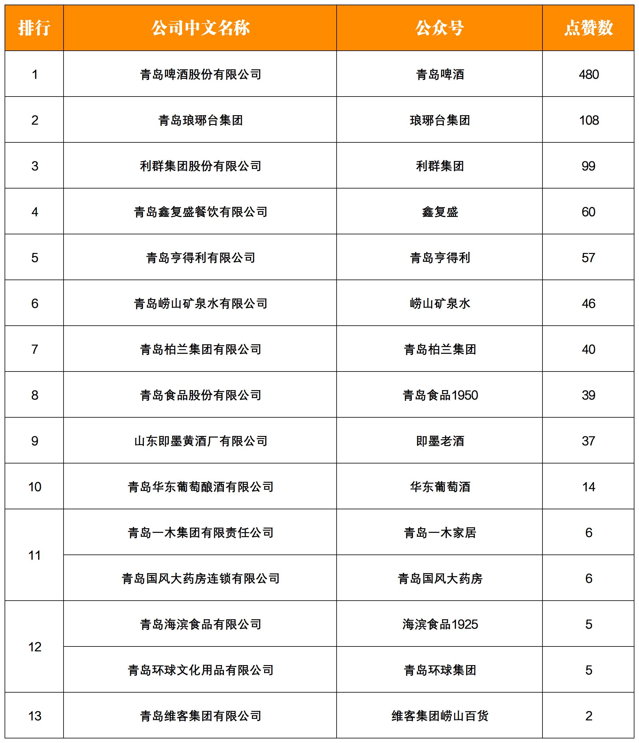 NO.13|權(quán)威發(fā)布:青島老字號企業(yè)微信影響力月度排行榜TOP15
