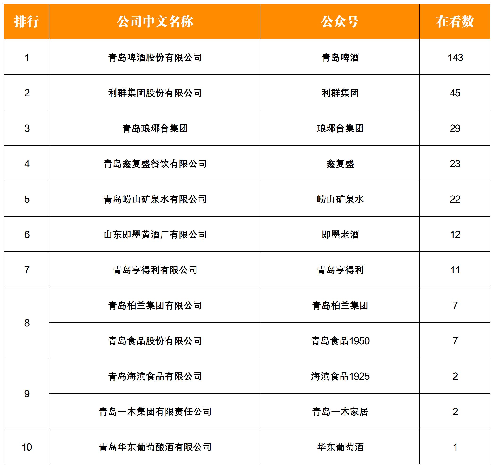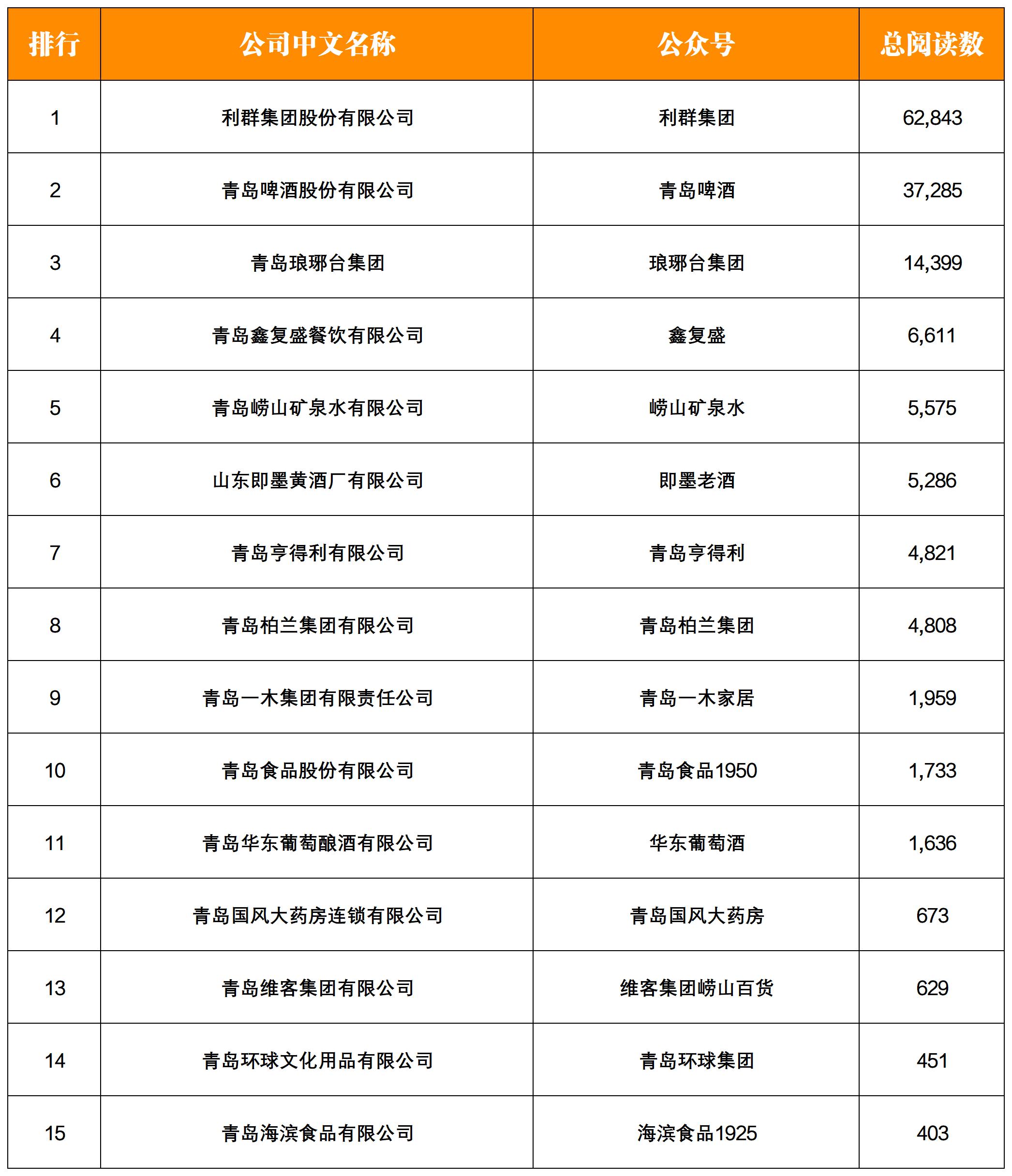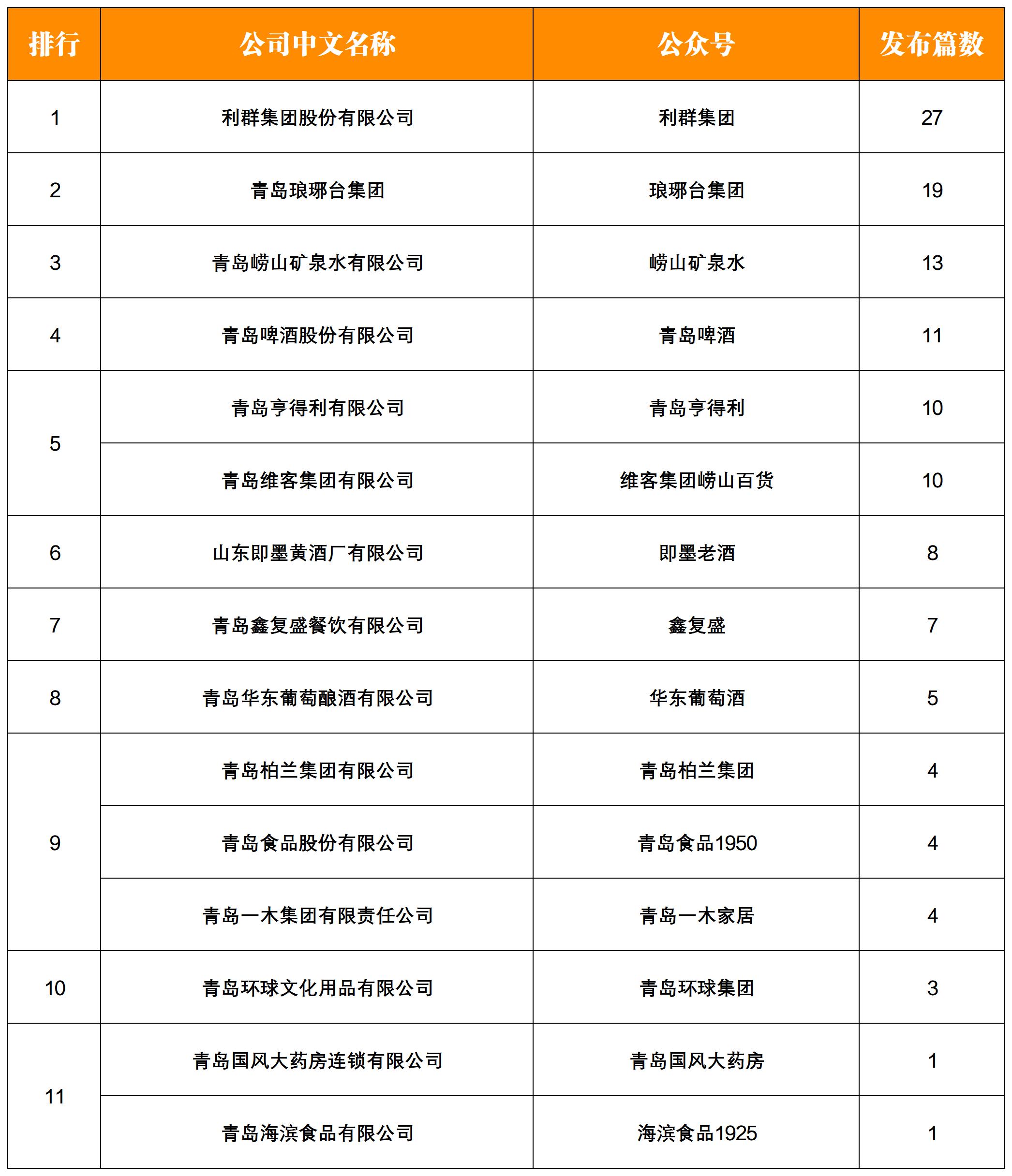 NO.10|權(quán)威發(fā)布:青島老字號企業(yè)微信影響力月度排行榜TOP15