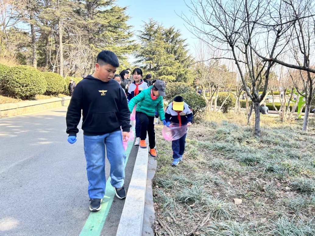 研學(xué)實踐前,同學(xué)們自發(fā)在林間撿拾生活垃圾,歡聲笑語在林間回蕩不息,充分展現(xiàn)了新時代少年良好的精神風(fēng)貌。