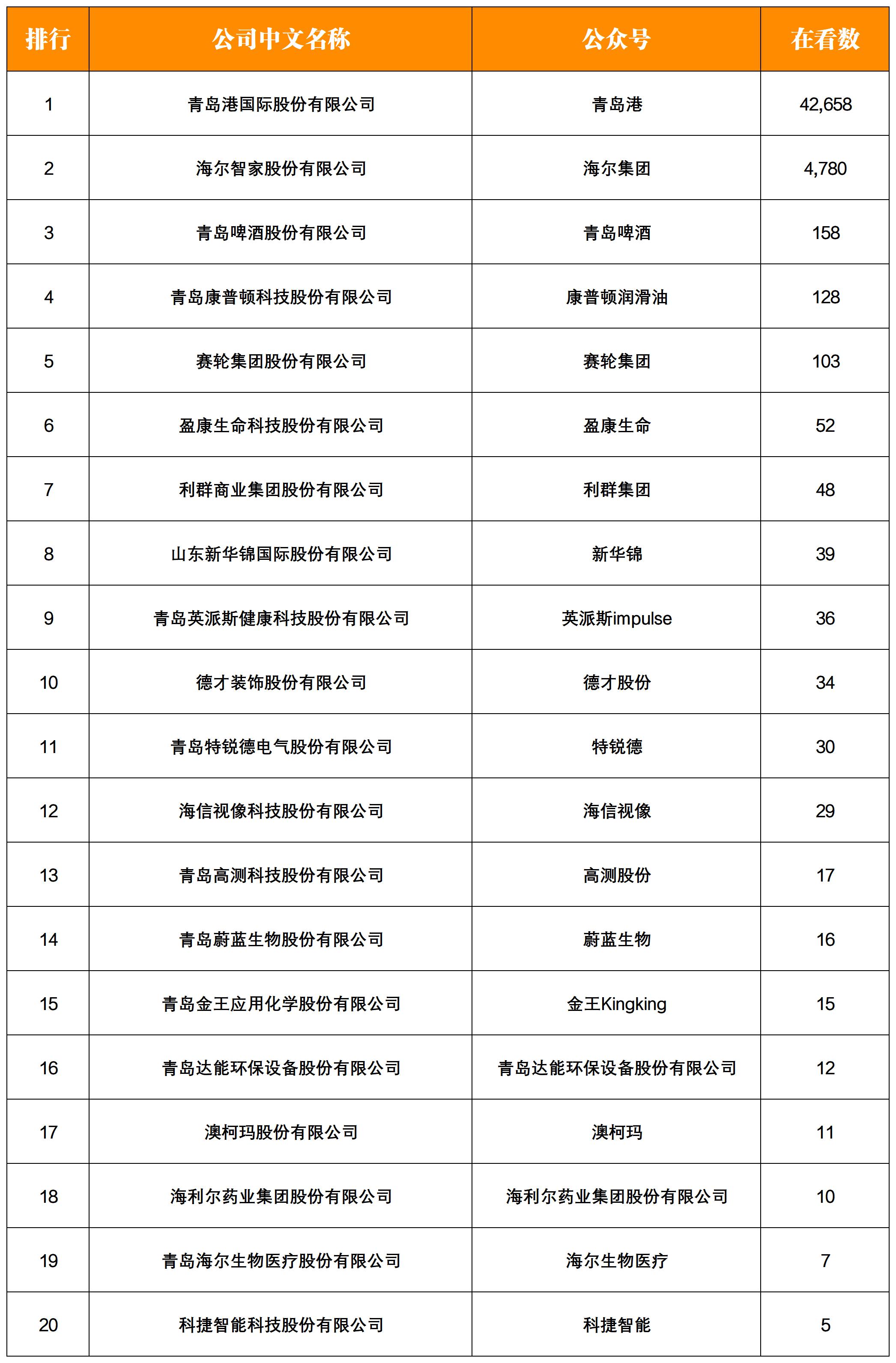 NO.5| 權威發(fā)布:青島上市企業(yè)微信影響力月度排行榜TOP20