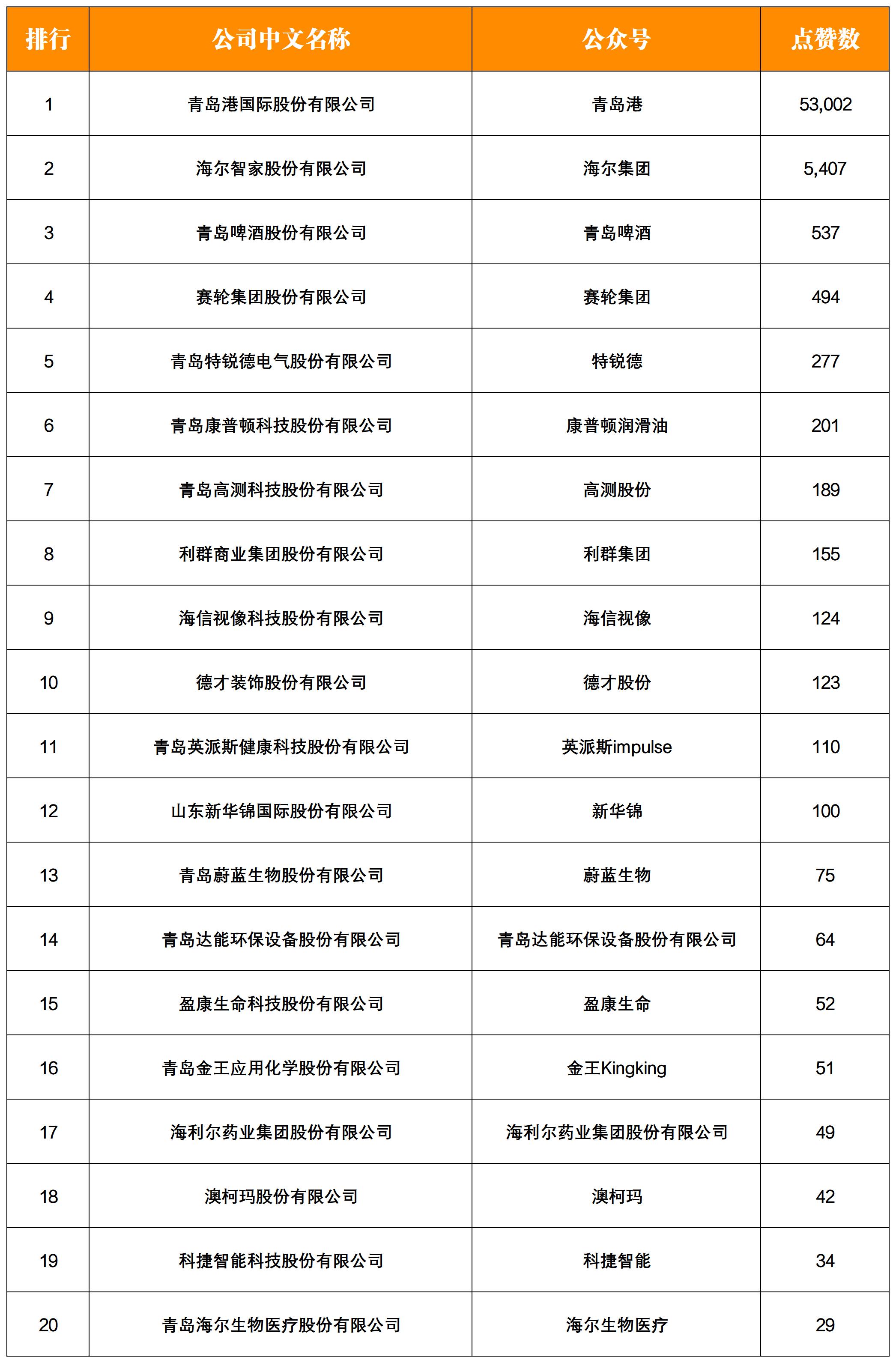 NO.10| 權威發(fā)布:青島上市企業(yè)微信影響力月度排行榜TOP20
