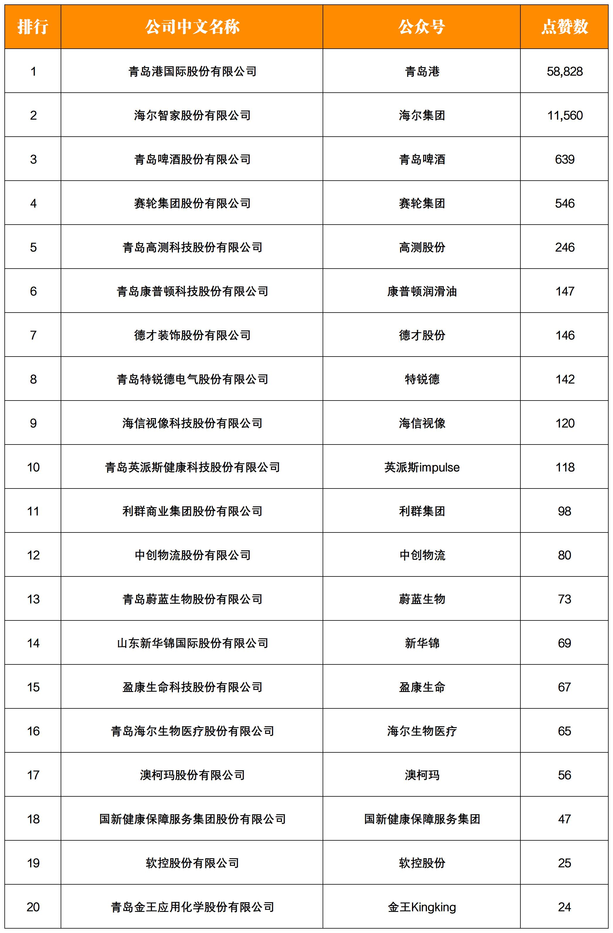 NO.10| 權(quán)威發(fā)布:青島上市企業(yè)微信影響力月度排行榜TOP20