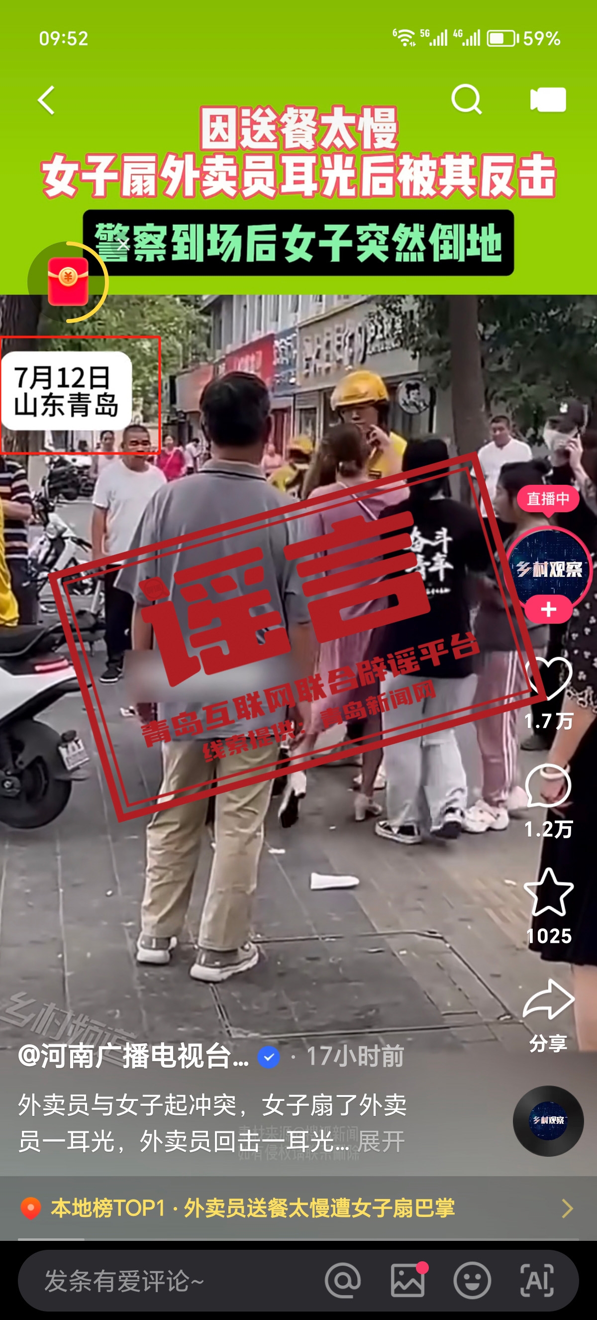 青島新聞網(wǎng)訊近日,有多個媒體賬號和網(wǎng)民在網(wǎng)絡(luò)上發(fā)布視頻,內(nèi)容顯示一名女子打了外賣員一個耳光,外賣員隨即還手,標(biāo)注此事發(fā)生在青島。經(jīng)青島新聞網(wǎng)記者調(diào)查核實,此事并非發(fā)生在山東青島。