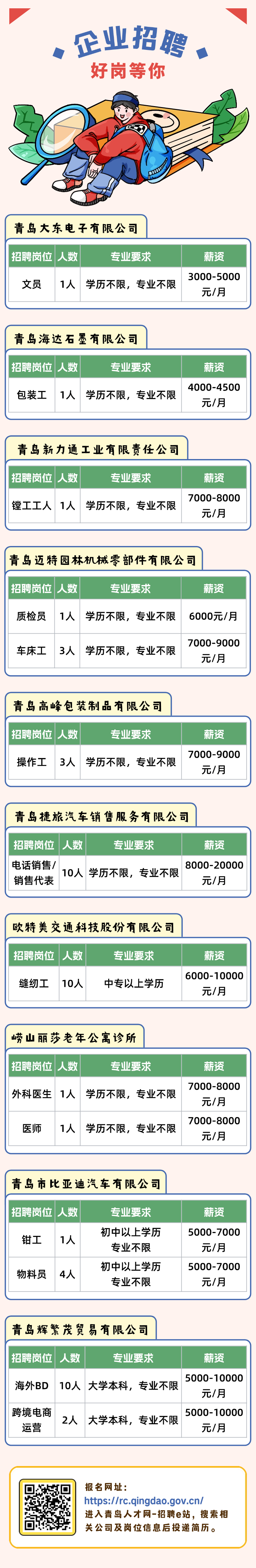 企業(yè)招聘?部分崗位不限專業(yè)不限學歷?