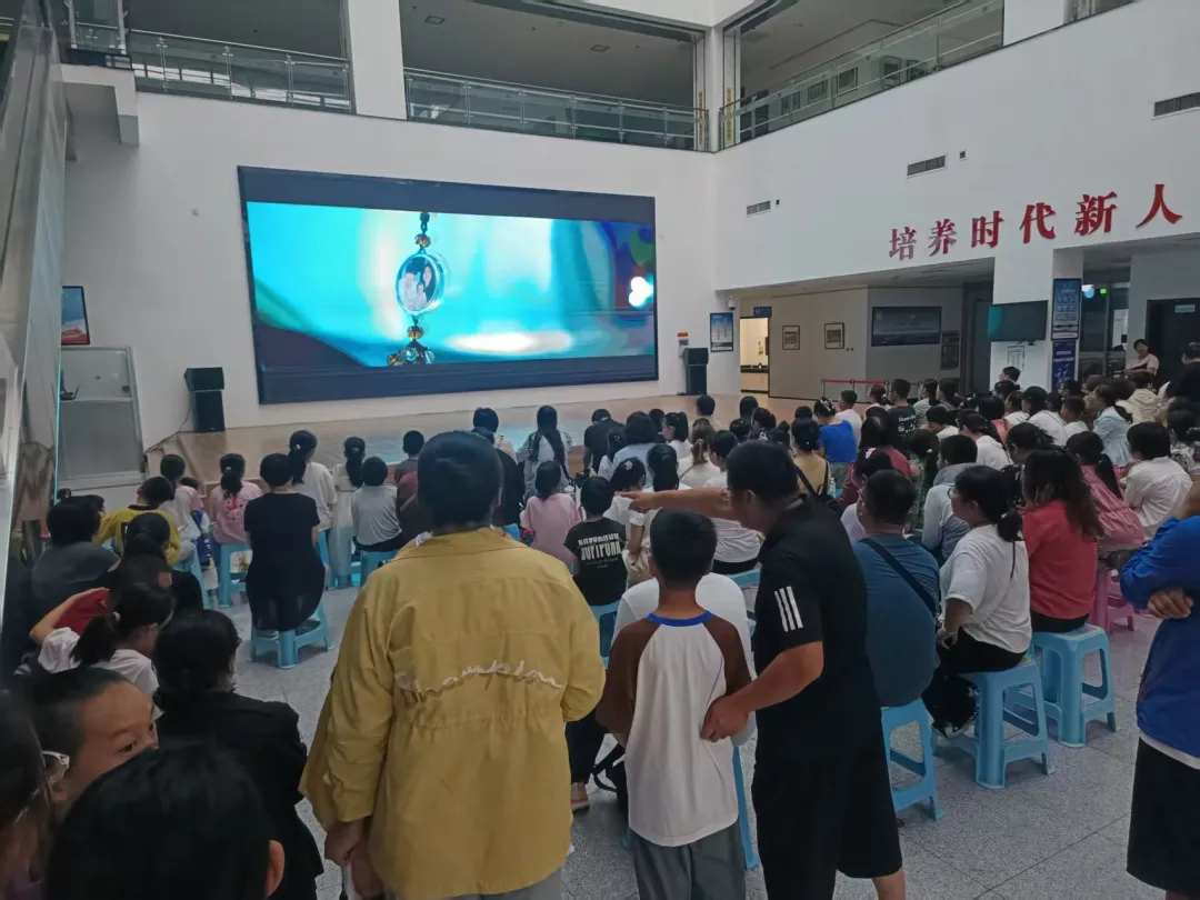 當晚19:00,文化中心一樓大廳座無虛席。影片中黃渤飾演的父親為兒子升學(xué)“瘋狂內(nèi)卷”的情節(jié),讓許多家長感同身受。當劇情發(fā)展到父子相互理解、回歸教育本心時,不少觀眾悄悄抹淚。許多孩子主動握住父母的手,畫面溫馨。