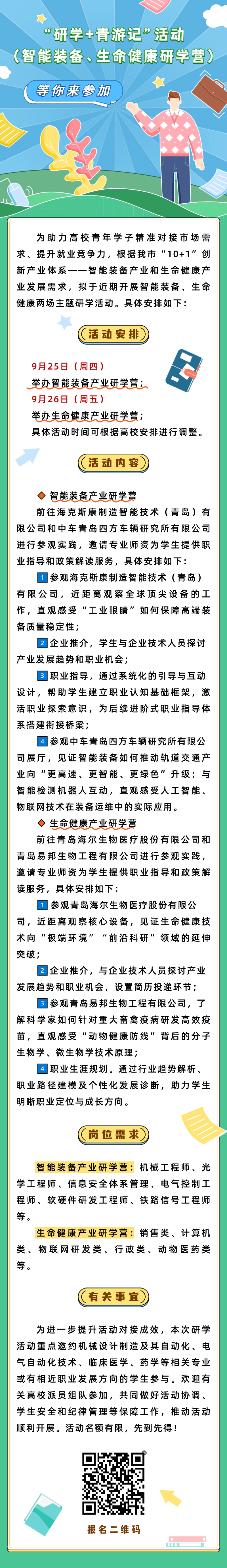 “研學(xué)+青游記”活動(dòng)(智能裝備、生命健康研學(xué)營(yíng))等你來(lái)參加