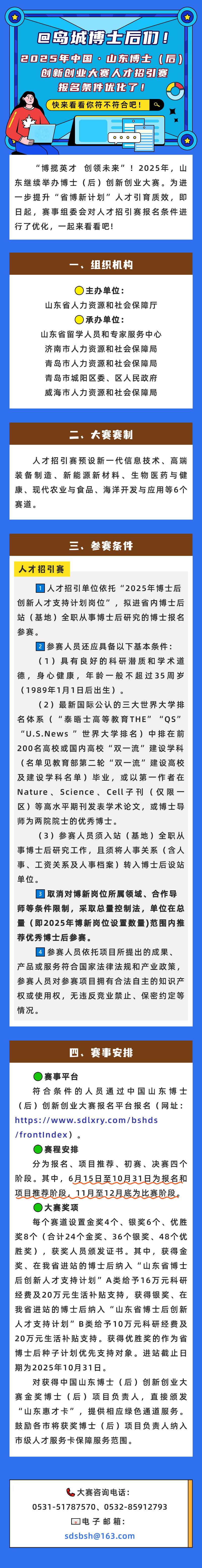 @島城博士后們!2025年中國(guó)·山東博士(后)創(chuàng)新創(chuàng)業(yè)大賽人才招引賽報(bào)名條件優(yōu)化了!快來(lái)看看你符不符合吧!