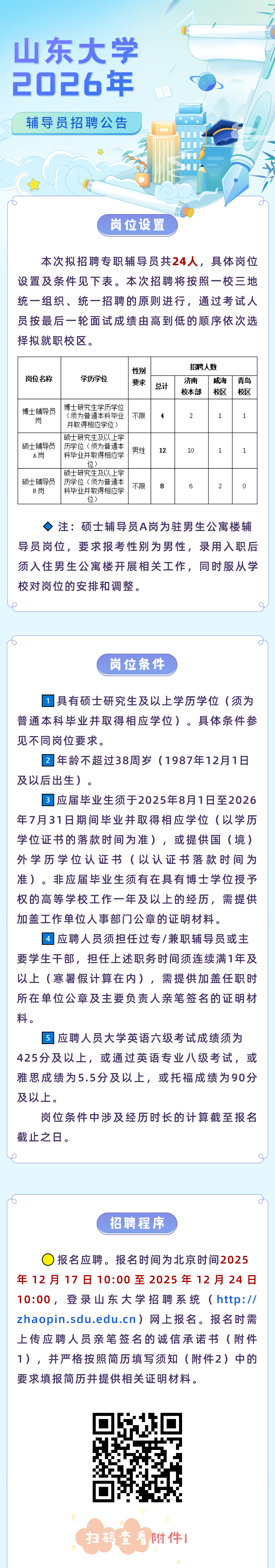 青島有崗??今起報名??山東大學發(fā)布2026年輔導員招聘公告
