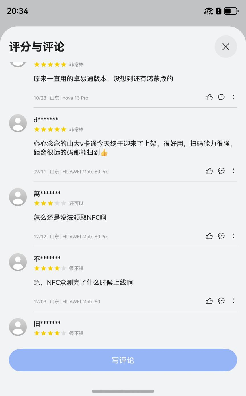 “終于有NFC校園卡了,自己的學(xué)校必須給個(gè)好評(píng)!”“NFC終于上了!”在華為應(yīng)用商店的評(píng)論區(qū),山東大學(xué)師生們的真實(shí)留言,為鴻蒙版“山大v卡通”的進(jìn)化寫下了最生動(dòng)的注腳。自今年9月正式上線以來,鴻蒙版“山大v卡通”便踏上了以師生需求為核心的快速迭代之路。此次上線備受期待的NFC功能,并深度融合服務(wù)卡片、統(tǒng)一掃碼、多重安全保護(hù)等鴻蒙核心特性,不僅為山東大學(xué)師生帶來更穩(wěn)定、更智慧的校園應(yīng)用服務(wù)體驗(yàn),更完成了一次基于鴻蒙系統(tǒng)級(jí)能力的深度重構(gòu)。這標(biāo)志著山東大學(xué)的校園數(shù)字化服務(wù),從“滿足需求”的1.0階段,邁入了“主動(dòng)進(jìn)化、體驗(yàn)引領(lǐng)”的2.0時(shí)代。“