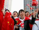 烏魯木齊市民熱情迎祥云 標(biāo)語情系四川地震災(zāi)區(qū)同胞