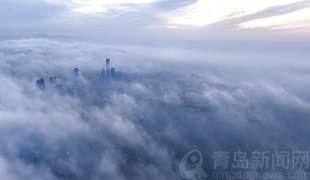 【大片】青島東部沿海出現(xiàn)平流霧 浮山灣畔又見(jiàn)海市蜃樓