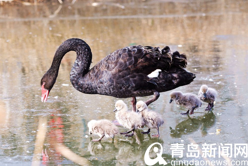唐島灣濕地公園黑天鵝一家 讓人怎么看都看不夠