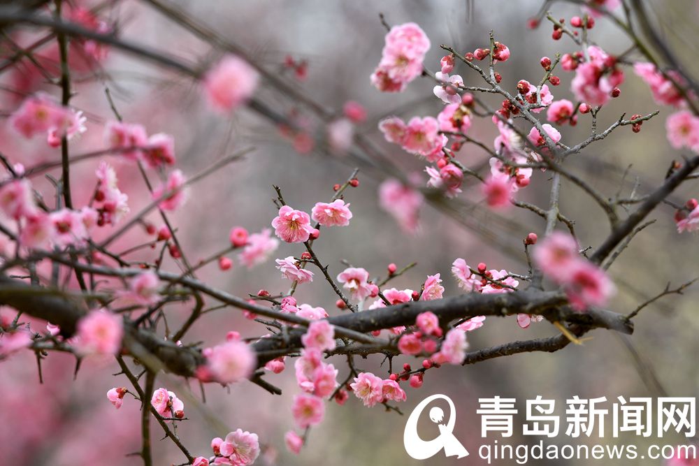 誰人不夸好顏色 唐島灣濕地公園梅花全面進入盛花期