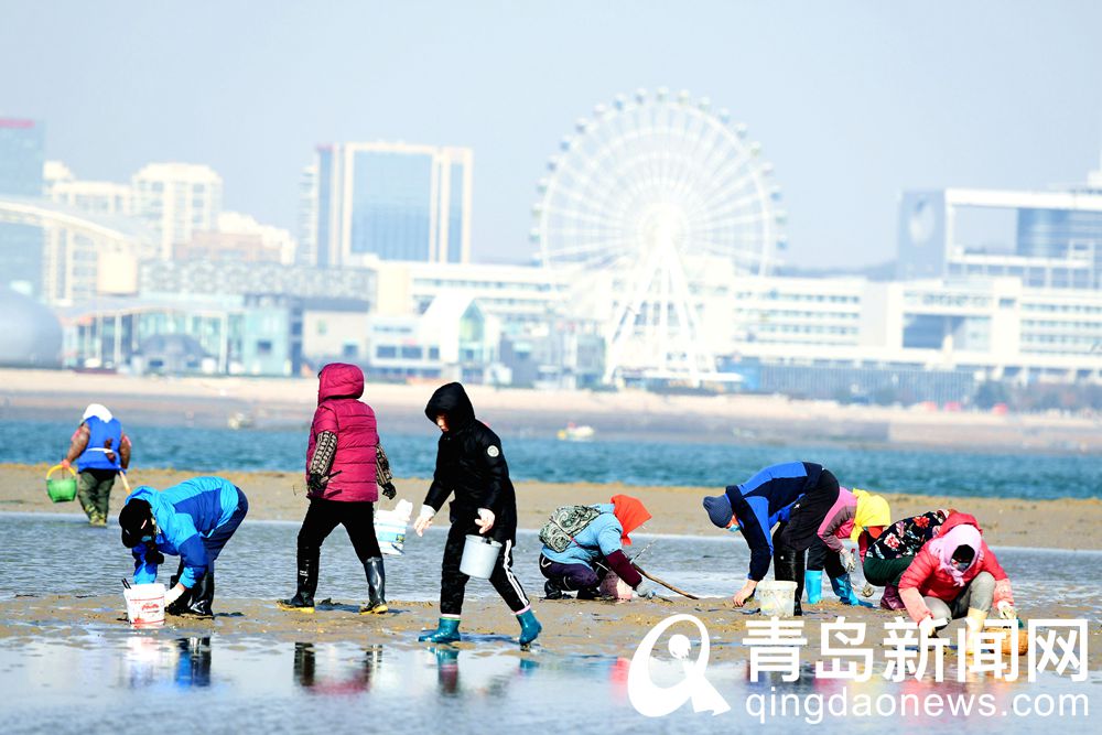 西海岸天文大潮日趕海盛況 好一幅海濱城市風(fēng)情畫(huà)卷