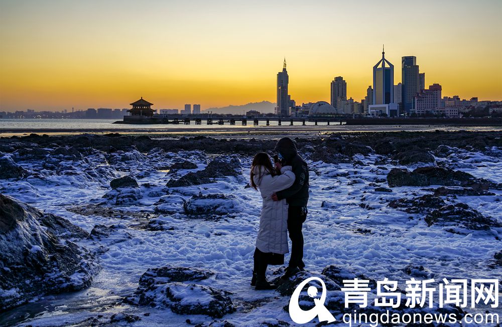 似夢(mèng)似幻 嚴(yán)寒天氣成就青島前海沿另一番夕陽(yáng)美景