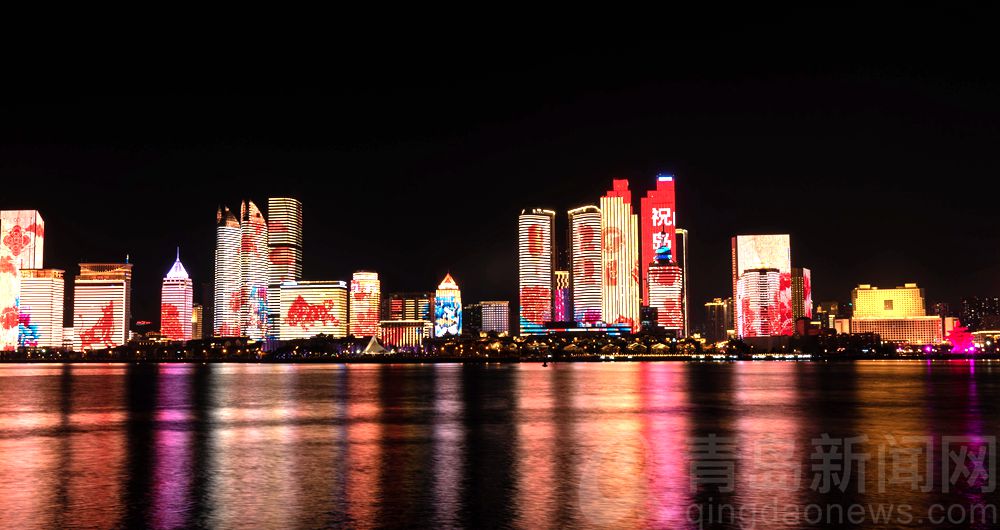 浮山灣春節(jié)主題燈光秀驚艷上演 海面都流光溢彩