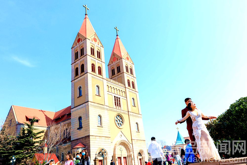 邂逅春日里的浙江路教堂廣場(chǎng) 藍(lán)天白云美得像童話(huà)