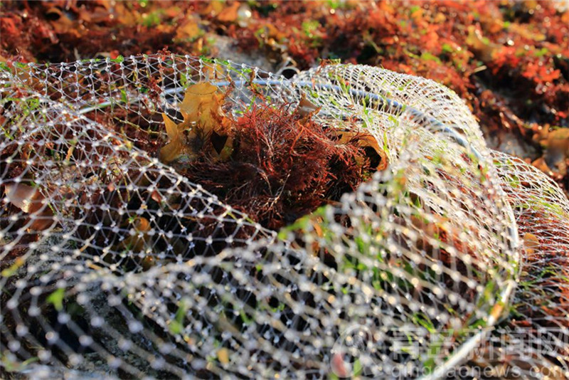 【撿寶】大潮把海菜沖上岸 澳門路海邊撿拾者真開心