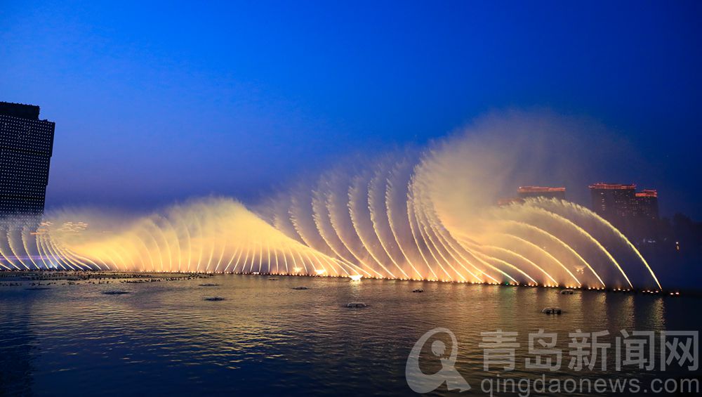 【城市大片】青島西海岸城市陽臺(tái)音樂水景秀 這個(gè)大噴泉真酷